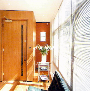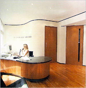 The solid timber floor and doors in Cherry wood and the subtle curves of the walls form this light and warm reception area evoking the feel throughout the whole building as you enter.